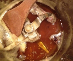Put butter and spices into TM bowl. Cook for 30 min. on Varoma temp. Reverse speed 1. Place the simmering basket on top of the lid, with a small jar and lid in the basket, to sterilise while cooking.