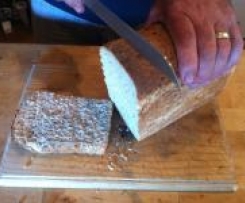 5. Roll dough into an even oblong and place into a sturdy bread tin. Prove in a warm, draught-free place (such as next to the griller while the oven is pre-heating) for 30 minutes or until risen to the desired size.