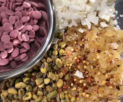 Bury a “surprise” inside small moulds by pouring half the mixture into the mould, place the “surprise” on top of mixture then pour remaining mixture to cover. Eg Pistachio, cranberries, apricots, chocolate, glace cherry, ginger work well.