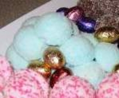 To make rounded shapes – Use corn flour or icing sugar and place a dessertspoon in each hole of a small muffin tray. Gently tap tray on bench to settle flour/sugar in tray. Using an egg (wash the shell first or use a cold boiled egg), press and twist the egg down into each pile of flour/sugar to make a vertical half egg shape. Making depressions with the egg horizontal will give you a wider shape that can be decorated into mice or rabbits. Two halves can be joined before decorating to make eggs or balls.