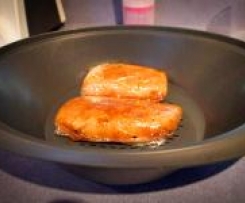 Finally I like to seal my chicken briefly on each side in a pan with a tiny bit of spray oil just to crisp it off.Take chicken out of glad wrap and put into a hot frying pan briefly on each side (not too long- it doesn't need to cook any longer)