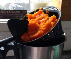 Chop Gramma into 1-2cm cubes & place in simmering basket, varoma basket & tray (depending on the size of the gramma)