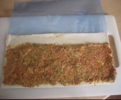 Using a sharp knife, cut filled rolls into 2cm long pieces.