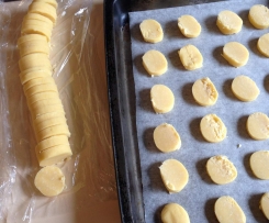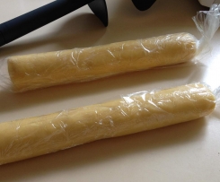 I cut each cylinder into 24. If you use thicker slices you will need to bake for longer.
