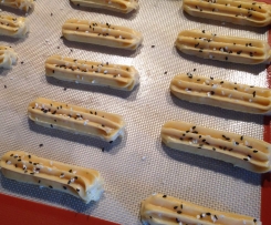 Sprinkle sesame seeds to garnish each Eclair and bake for about 20 minutes until golden brown and slightly crispy.