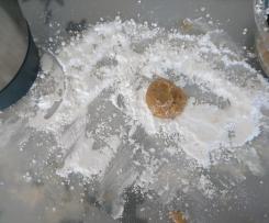 - Test dough by dropping a heaped teaspoon onto a ThermoMat or bench top well dusted with icing sugar. Dust your hands and form the dough into a ball. When set down it should hold its shape at first, then slowly start to collapse a little. If it is too slack add the rest of the almond meal and mix a further 10 seconds speed 3.