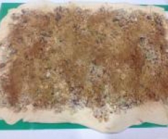 Once you have a very large flat rectangle, spread CADA mix evenly over dough. Optional sprinkle with cinnamon or extra sugar if desired.