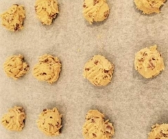 Place golf ball sized and shaped amounts onto a baking tray with a good amount of space either side and bake in a moderate oven (180 degrees) for 10 minutes. The key is to remove them when they are still a little under-done as they'll continue to cook for a few minutes outside of the oven.
