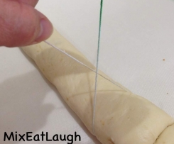Roll into a log and cut each log into 10 scrolls.