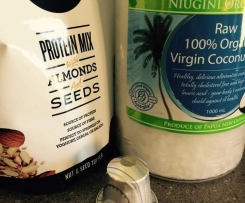 Preheat Oven 180 degrees and grease a sml/med cake tin with Coconut Oil, set aside