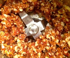 1. Place figs, macadamia, dried apricots and dates into the bowl and pulse 3 times for 1 second until nicely and eavenly chopped.