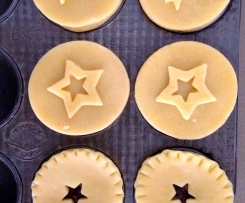 Cut into 12 larger bases and matching smaller lids to line 12 rounded patty tins or mini tart shells. Also cut out some stars for decoration.