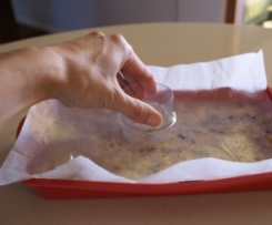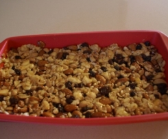 • Pour into baking tray and press down with a sheet of baking paper, using the MC to smooth and compress the mix (this is a useful tip for many slices you want to be firm!)