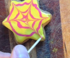 Get a toothpick and draw it from the dot in the centre, through the circles to the outside edge of the biscuit, on the star do this until you have done one for each point. And you have a spider web!