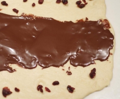 2. Place chocolate filling down the centre of the rectangle and sprinkle with dried canberries.