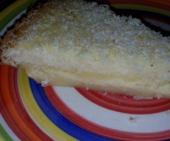 Pour mixture (will appear quite wet) into pie dish or casserole dish and place in Pre Heated oven for 45-55 minutes until no longer wobbly and appearing golden brown around edges. If you would like to top with some extra coconut for last 15 minutes of baking this will brown up nicely but this is not integral.