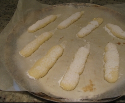 Preheat the oven to 180 degrees C Prepare 2 baking sheets with baking paper.Put 120 g sugar in TX bowl and mill at speed 8 for 2-3 sec. Set aside in two batches one 75 g one 45 g.Put egg whites in bowl. Set time 2 minutes, temp 37, speed 2. Ensure bowl reaches temp before continuing.Put butterfly into bowl. Whip egg whites speed 4 until soft peaks form. Gradually add the 75 g of sugar and continue beating until stiff peaks form; Check and scrape down about each 2 min. The meringue will be glossy and smooth. Place into a clean bowl. Remove butterfly.Put yolk into bowl and whip speed 4, 10 sec. then fold into the meringue.Sift the flour over the mixture and fold in gently.Pipe the ladyfingers: Fit the pastry bag with the large plain tip and fill with the ladyfinger batter.Pipe strips of batter 12 cm. long and 1.5 cm. wide diagonally onto the baking sheets, leaving 5 cm. between each strip.Sprinkle half the 45 g lot of sugar over the ladyfingers; wait 5 minutes and sprinkle with the remaining sugar.Holding the baking paper in place with your thumb, lift one side of the baking sheet and gently tap it on the work surface to remove excess confectioner's sugar.Bake without opening the oven door for 10 min.Then, rotate the baking sheet so the ladyfingers colour evenly.Cook until lightly golden, about 5 more minutes.Remove the ladyfingers from the baking sheet with a metal spatula while still hot, and let cool on a rack.Recipe is conversion from Le Cordon Bleu