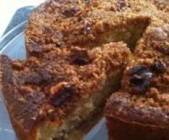 Spread half of the mixture into a greased and lined 23 cm cake tin. Top with half of the streusel. Repeat with remaining cake mixture and finish with streusel topping.