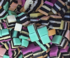 - 250 g Licorice Allsorts, Cut into quarters