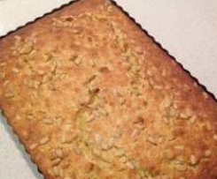 4. Put the mixture into the tin and sprinkle with toasted pine nuts.  Bake in the oven for 30 mins or until a scewer comes out clean.