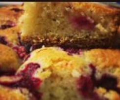 Pour into a greased square tin. Sprinkle berries all over the top. (I completely covered the top in berries - about half of them sank, which was the desired result.)