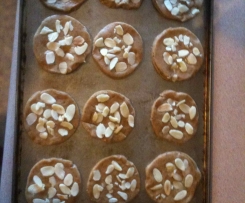 Arrange on the prepared trays and press almonds into the top.