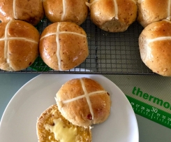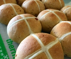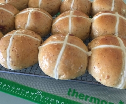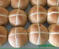 Once the buns have "proved" a second time, remove from oven and start to preheat the oven to 180 degrees whilst you pipe the crosses on to the buns please see tips below...