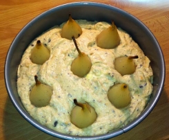 Pour into a greased and lined spring form tin and then place the baby pears into the mix (you may need to slice a bit off the bottom of the pear to make it sit straight).