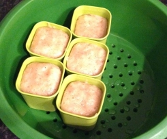 The cooking times and serving sizes will vary depending on the size of silcone molds you have. I have used the smaller square Tupperware microsteamer ramekins (as seen in the recipe images) which are about the same capacity as a silicone cupcake pans and also done in a Tupperware muffin form. The muffin form took about 30 minutes to cook while the ramekins were about 20 minutes.