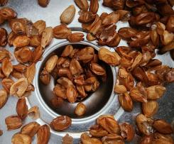 Put steaming basket on top to avoid splatter - Drain almonds and water through steaming basket