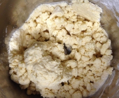 Add butter/ghee/chilled coconut oil or other alternative to flour mix and crumb together - speed 5-6, 10 seconds. Listen for the change in sound as the chunks are gone.
