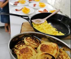 Delicious, fluffy & thick pancakes. I made exactly to the recipe (with the sugar). I thought, being thick, they wouldn't cook in the middle - but I was wrong... They were light & fluffy. Made half plain and half with banana. This will be my go to pancake recipe from now on. Thanks for the great recipe!