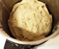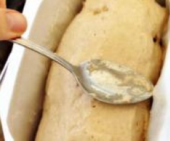 If you like, you can sprinkle the loaf with a little water and use the back of a spoon to smooth the surface. Cover loosely with a plastic bag (so it doesn't touch the dough) and leave to rise for at least an hour, or until dough rises approx. 2cm. (It won't rise as high as gluten bread, but the texture will be lovely.)