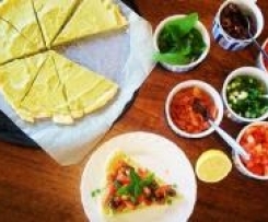 Turned out so well. I subbed in besan (chickpea) flour for the whole chickpeas. Tastes really good, is filling and you know whats in it (unlike the GF pizza bases from chain pizza stores). I did bake mine for about 15 min, then added toppings and baked again till the cheese was golden. Thanks for the recipe.