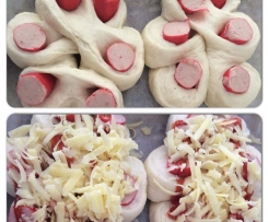 made 6 hot dog flowers and putting the rest of the dough mix into cheese n bacon buns -Grandchildren are looking fwd to taste testing.