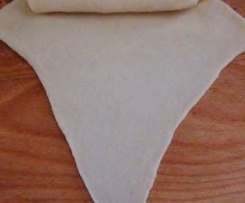 6. Turn the square on its end so you now have a flat diamond shape. Stretch out the closest corner with the rolling pin and roll it up starting from the top and curve it into a crescent shape.