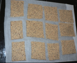 Knead the dough on your ThermoMat. Roll out (5mm thick) and cut in squares.