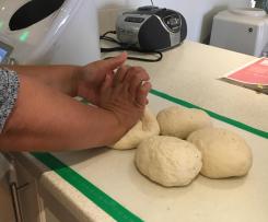Grease & flour a camper oven & lid. Pre heat in the oven. Add the 4 portions of dough. Cover with the camper oven lid & prove in a warm place. I put mine in a sunny spot outside. Check at regular intervals. This dough proved over 2 & 1/2 hours.