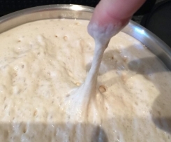 Sprinkle the 1 1/2 teaspoons of yeast over the water and then add the 350g of bakers flour to the bowl. Mix on speed 3 for 5 seconds and then speed 6 for a further 10 seconds or until there are no lumps.