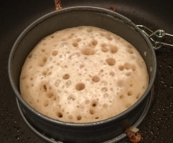 On a frypan or flat griddle, oil or butter egg rings, crumpet molds, mini spring form pan surrounds - anything of shape that can take the heat! Have the pan on a low heat. Fill the rings or molds with about 4-5 large spoonfuls of the batter and cook long and slow. They will slowly start to cook from the outside, changing colour slightly and separating from the mold. You can remove the mold at this stage. Continue to cook slowly until there is no wet dough or shine on top of the crumpet - and enjoy the slow process of watching the little bubbles pop. Flipping them will ruin the top bubbles, as does putting them under a grille so patience is essential for cooking these.