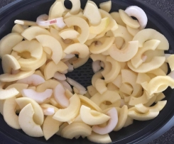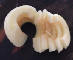 [[wysiwyg_imageupload:862:]]TIP: Highly recommend purchasing an apple peeler, corer and slicer. It make short work of peeling, coring and slicing the apples as show in the pictures. Cut the apples in half and place into the bottom part of the Veroma.