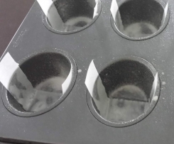 1. Preheat oven to 190deg. Grease really well a friand tray and line holes with strips of baking paper, as pictured, for easy removal of puddings.