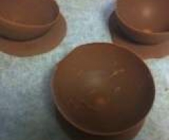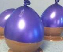 Spoon 1 Tablespoon Choc into lined tray giving enough room to spread. Dunk balloons in melted choc to give a second coat. Place balloons onto Tablespoon drops on tray for the base of your egg. Set in freezer.