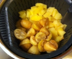 Scoop out feijoa flesh. With 3 minutes to go add feijoa to apple in TM basket and let cook for last 3 minutes.