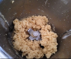 Once the butter and sugar are well mixed, add the almond meal, mix speed 4 for about 5 second, then add the 1/2 egg and mix 5 seconds speed 4, scrape everything down and mix again for 5 seconds speed 4.