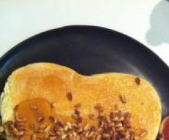 6. Turn out onto a platter and drizle with extra honey and sprinkle with pine nuts.