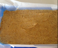 5. Pour and spread into a lined container (approx 20cmx30cm). Press down firmly with flat part of MC.