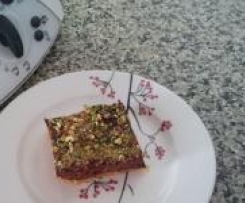 Pour filling mix over top & sprinkle on the reserved pistachios.