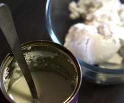 Start by opening the can of chilled coconut cream and removing the solidified cream on top, leaving the clear or opaque liquid down the bottom.