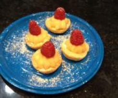To assemble - pipe some of the creme patissiere into each pastry tart and top with a raspberry ..... sprinkle with icing sugar for that perfect look .... they taste amazing ...